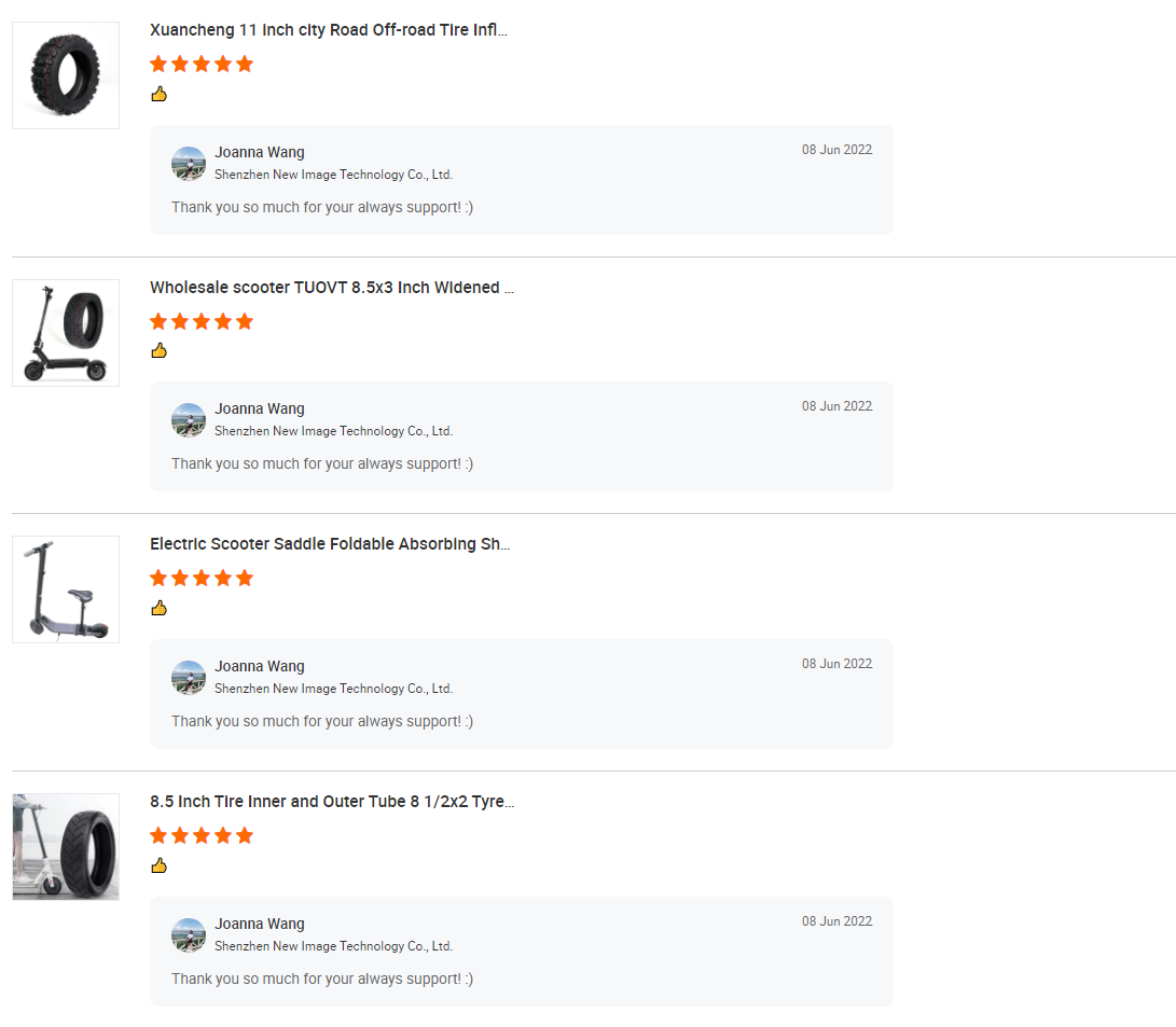3.We have many other tire for Xiaomi , Ninebot ES1, ES2, ES4, Max G30, Kugoo , Zero electric scooters, if you need other size of tires, please feel free to ask for price list.